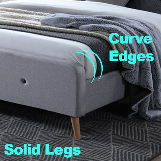 Queen Size Scandinavian Grey Fabric Bed Frame