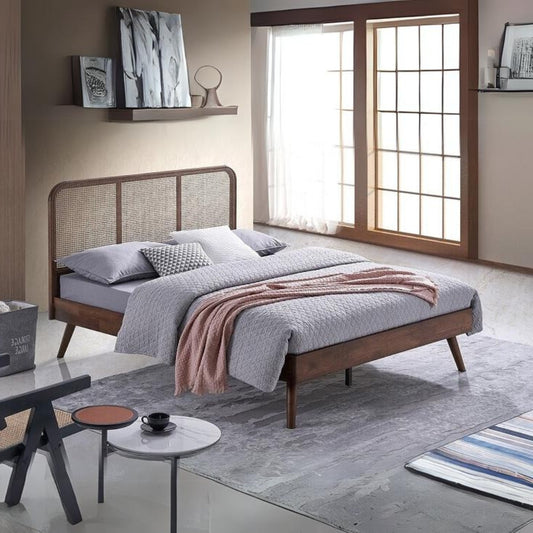 Solid Wood With Rattan Queen Bed