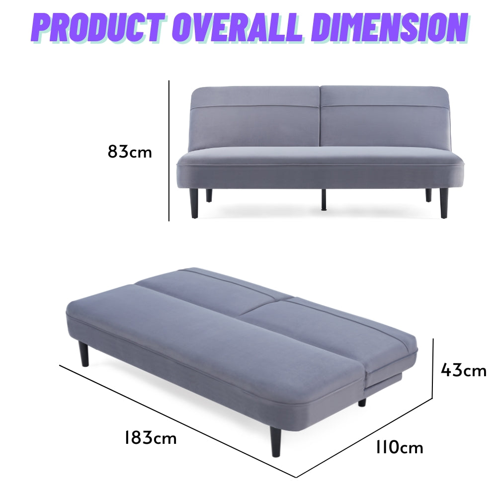180CM 3 Seater Pet Friendly Grey Sofa Bed