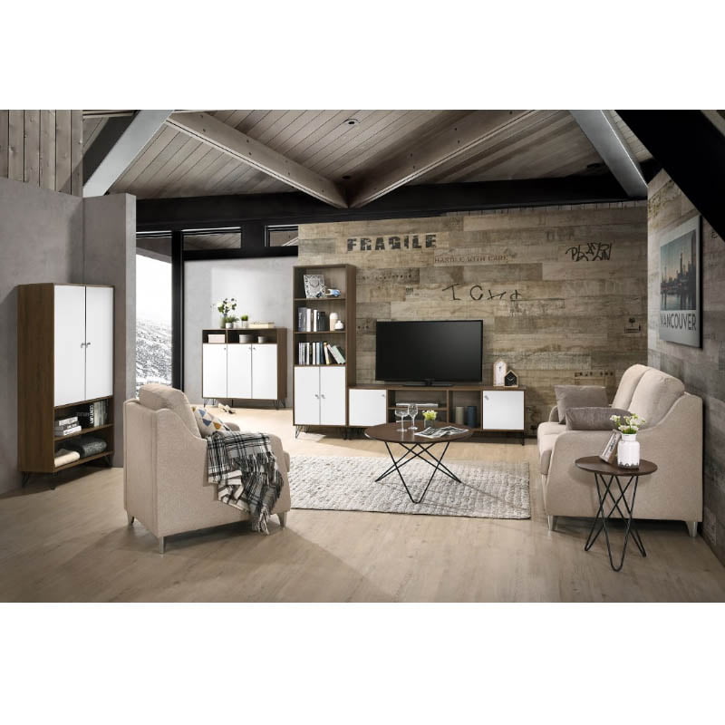 - Description: Modern Loft Style TV Cabinet, Wide Storage Space, Strong Powder Coated Metal Leg, Self-assembly required.